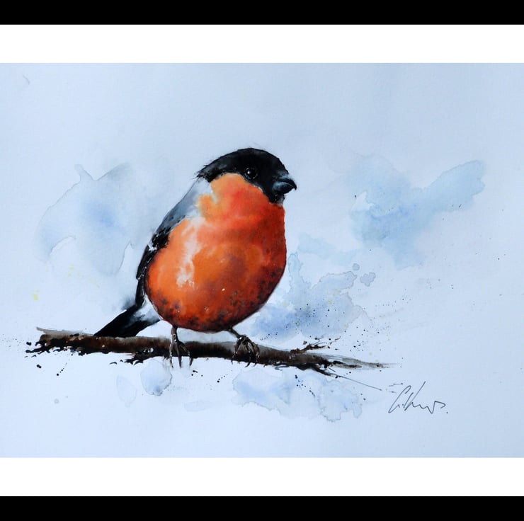 Working from my home studio on the beautiful Isle of Mull off the west coast of Scotland, my paintings are inspired by the wonderful Seascapes, Landscapes and Wildlife that surround me. This particular painting is of the beautiful Bullfinch, a joy to watch on the garden feeder.