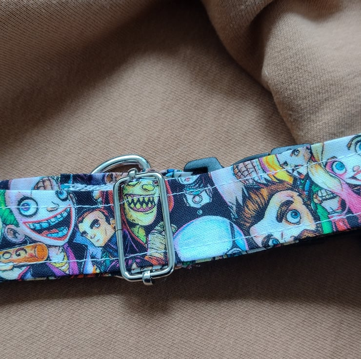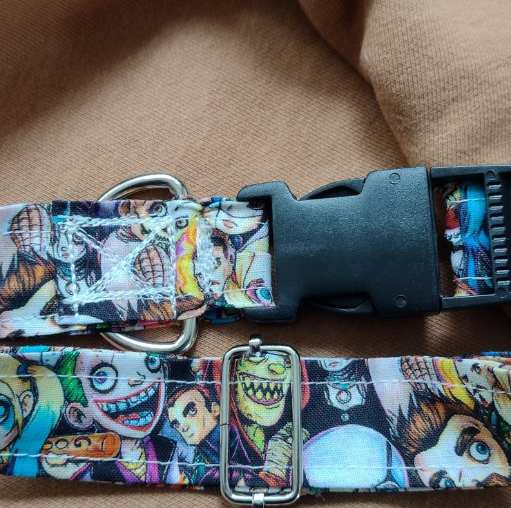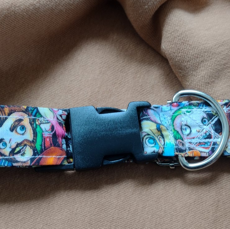 Dog collar with plastic buckle and metal slider, metal d ring to attach name tag/lead