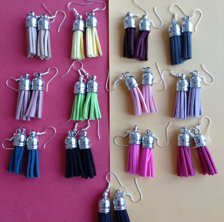 I made tassels with faux suede and attached these little jelly fish looking cuties to a hook earring which can be changed into a clasp or clamp earring if needed