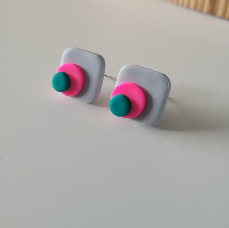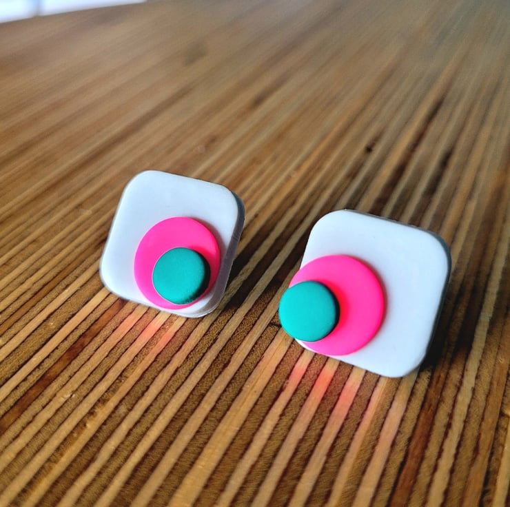 Neon Stack - Square Stud Polymer Clay Earrings