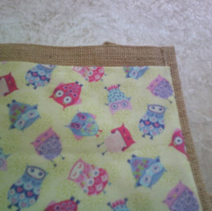 This Natural Jute bag comes with a 100% Cotton lined pocket with a Velcro fastening on one side which is very handy when out and about for popping your phone, keys or purse in. Ideal for using on a trip to the theatre to pop your treats in or on a day trip - especially if you don't want to take a handbag - you have a 2 in 1 with this bag.