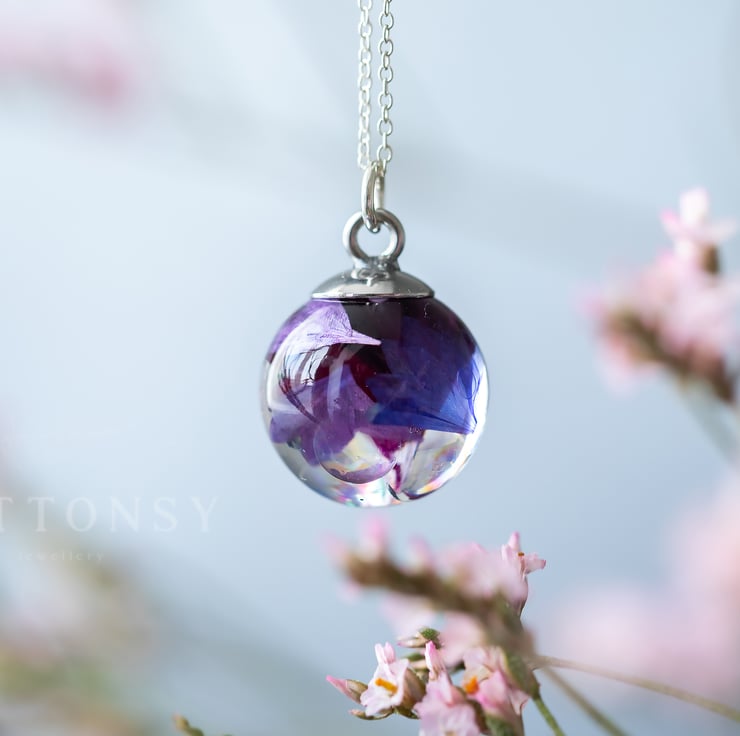 Cornflower Bubble Globe Necklace - Iridescent Bubble Jewellery - Sterling Silver