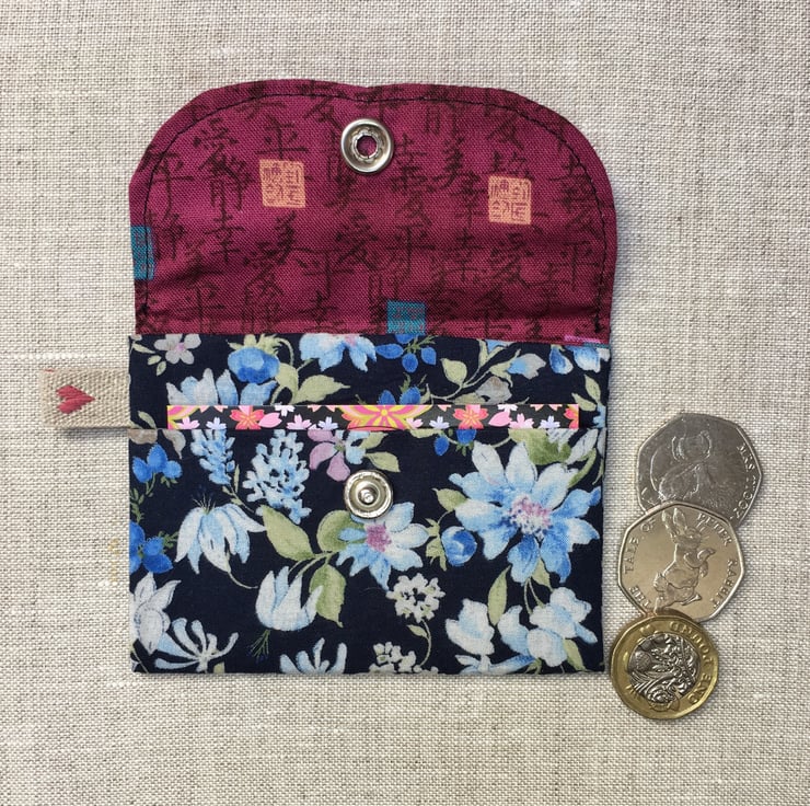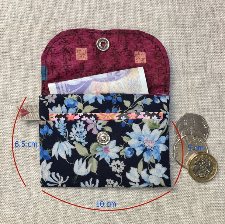 The pouch is fully lined with a complimentary cotton fabric, and has been crafted with interfacing to give structure. An attractive snap fastener ensures the card case closes securely.