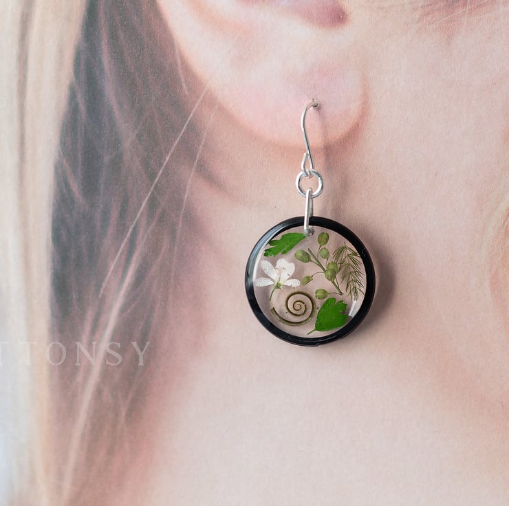 Each pair of earrings will be slightly different but yours will be filled with beautiful, tiny pieces of confetti from the forest.