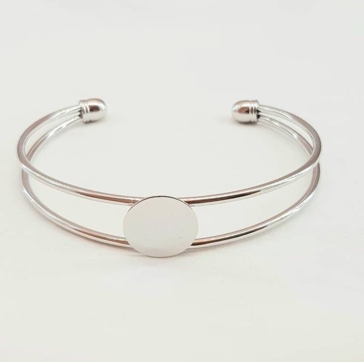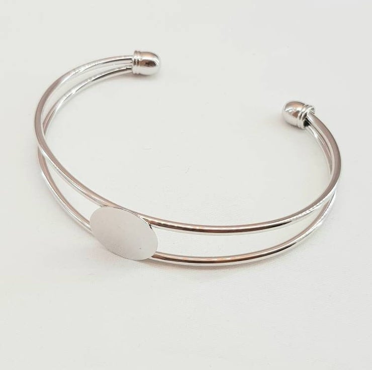 Silver plated bangle finding blanks for jewellery making 15mm flat pad.