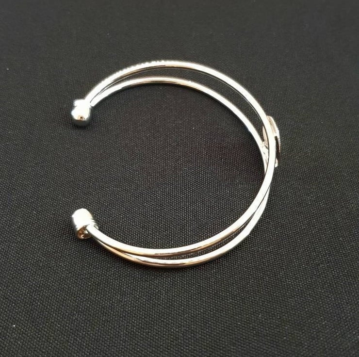 The flat pad of this bangle makes it ideal for cabochon gems or dichroic glass the list is endless.