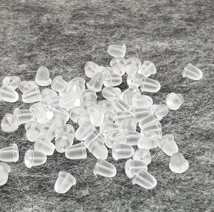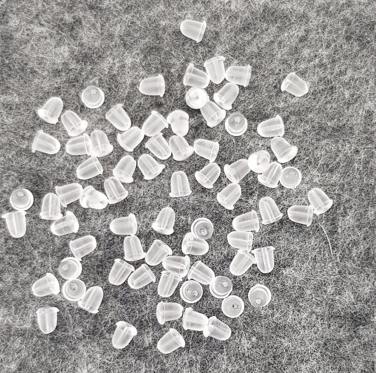100 pcs Rubber earring backs, plastic stoppers, butterfly backs, earring stoppers, silicone backs, plastic domed earring backs.