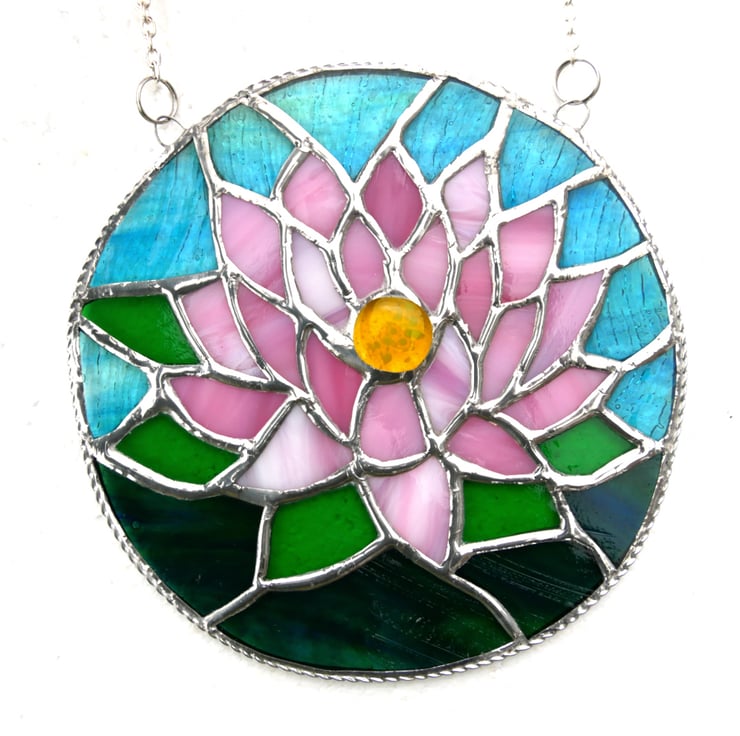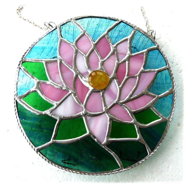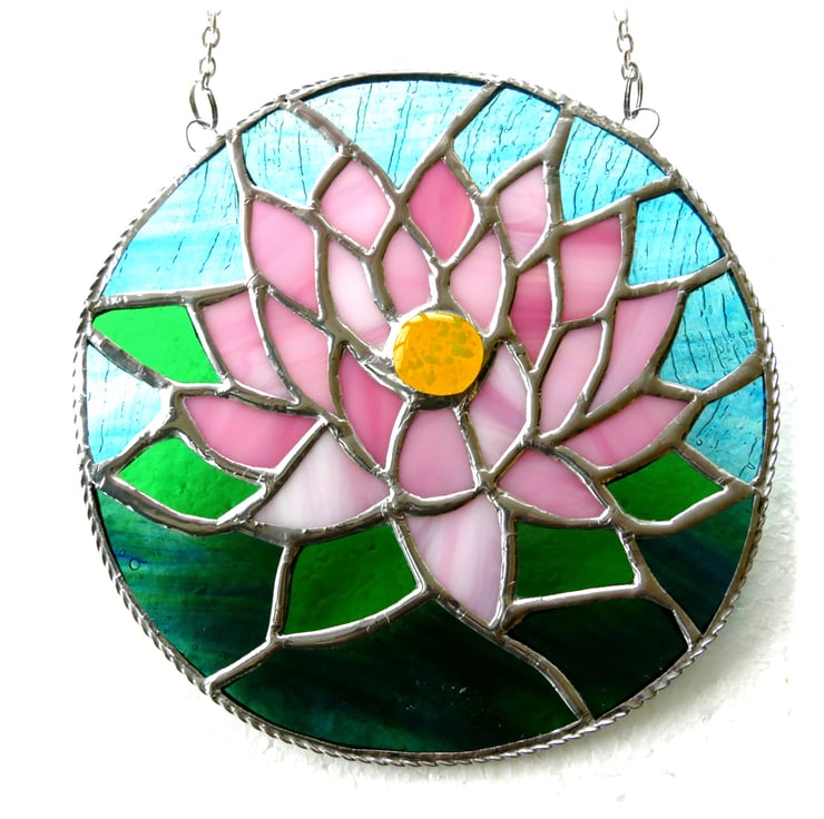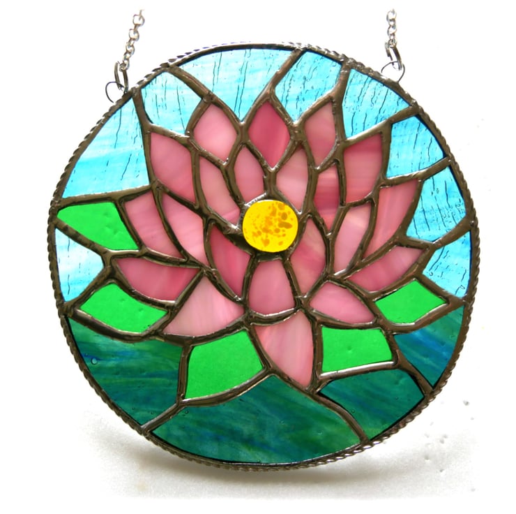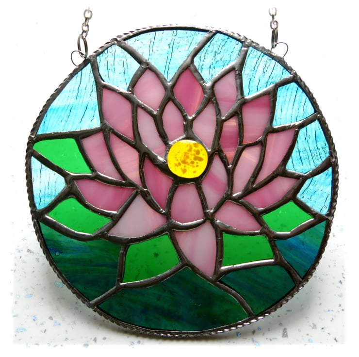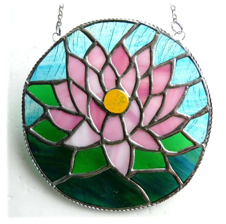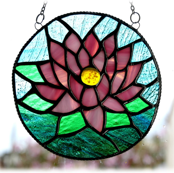 My daughter suggested that the beautiful water lily flowering in my garden pond would make a good suncatcher. I designed this based on that flower and then gave it to my daughter for her birthday.