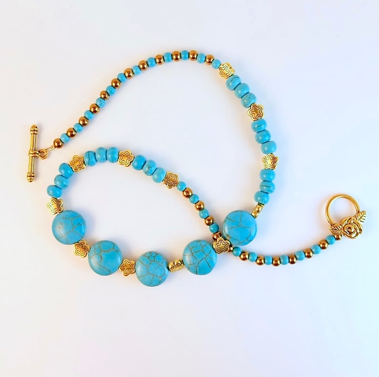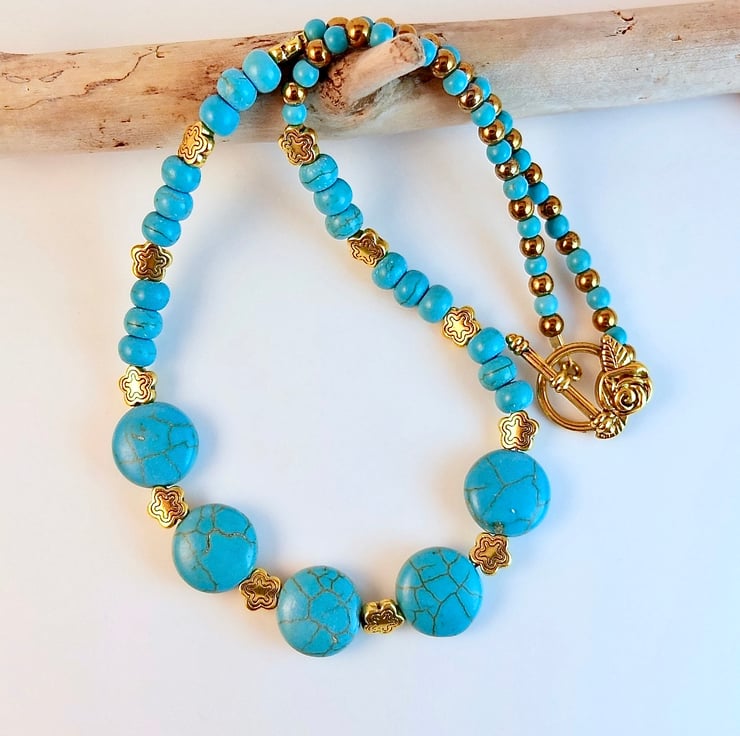 Turquoise And Gold Necklace, Handmade In Devon, Free UK Delivery.