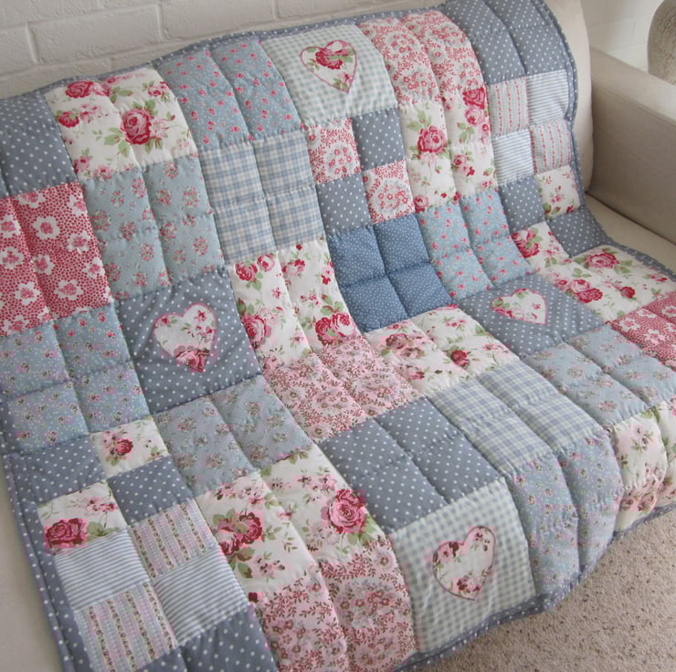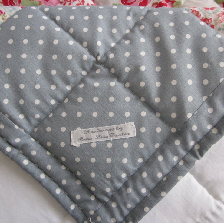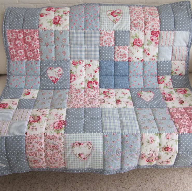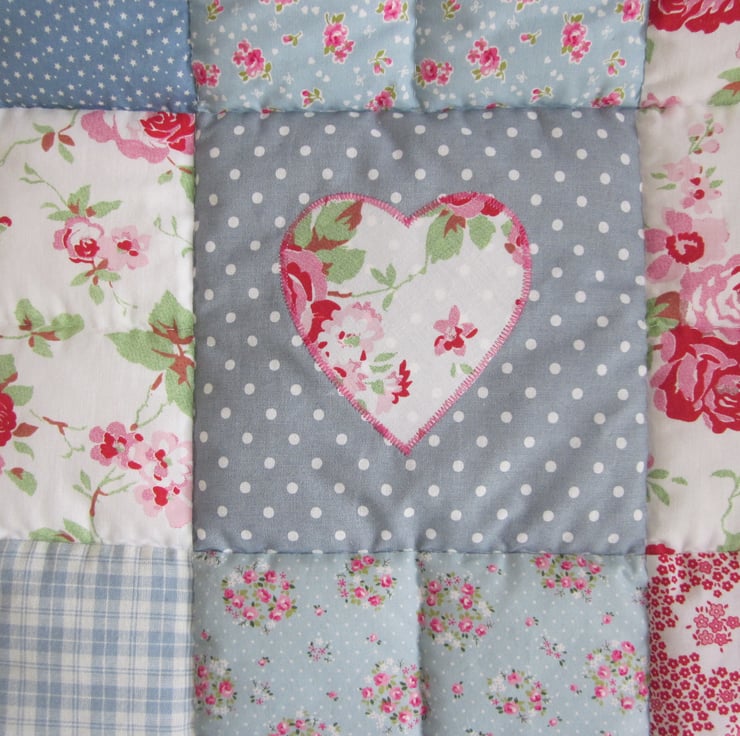A traditionally made Patchwork quilt 44 1/2" x 44 1/2 " - ( 113cm x 113cm ) made from 100% cotton fabric - Hand Quilted and Hand Finished.