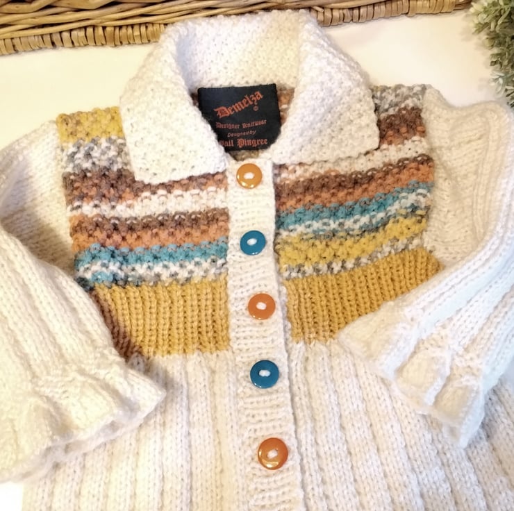 Baby knitwear is designed and hand crafted by Demelza Designs in Cornwall meeting UK baby safety standards, Only branded premuim acylic, acrylic/natural fibre blends or pure natural fibre yarns are used in baby knitwear which conforms to BS984/76 standards.