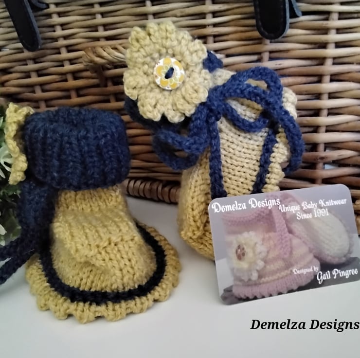 Baby knitwear is designed and hand crafted by Demelza Designs in Cornwall meeting UK baby safety standards, Only branded premuim acylic, acrylic/natural fibre blends or pure natural fibre yarns are used in baby knitwear which conforms to BS984/76 standards.