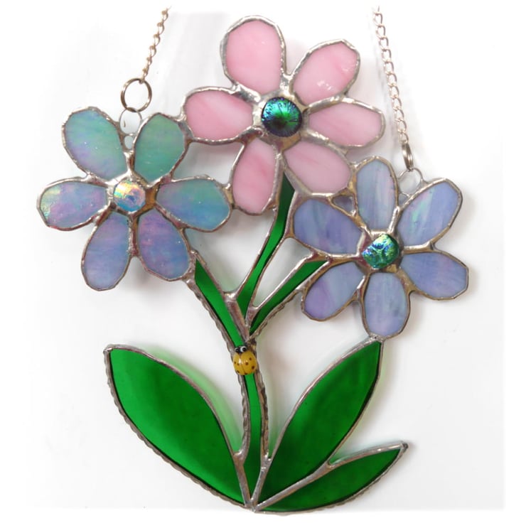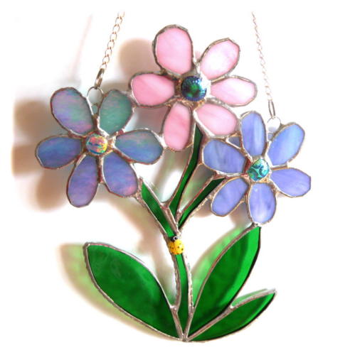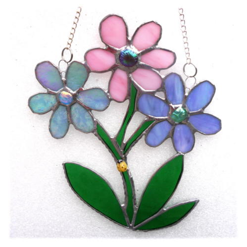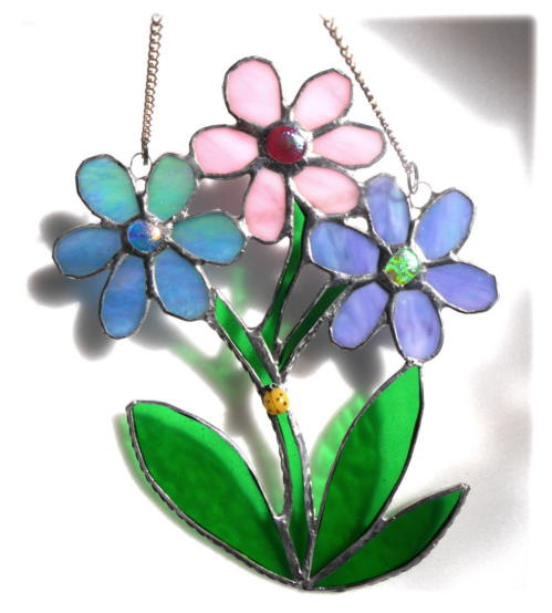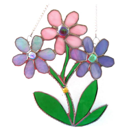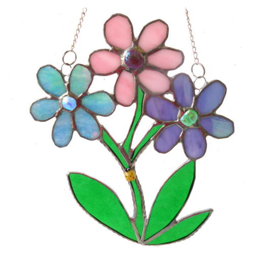 This is a stained glass suncatcher, hanging made using the Tiffany copper foil technique.