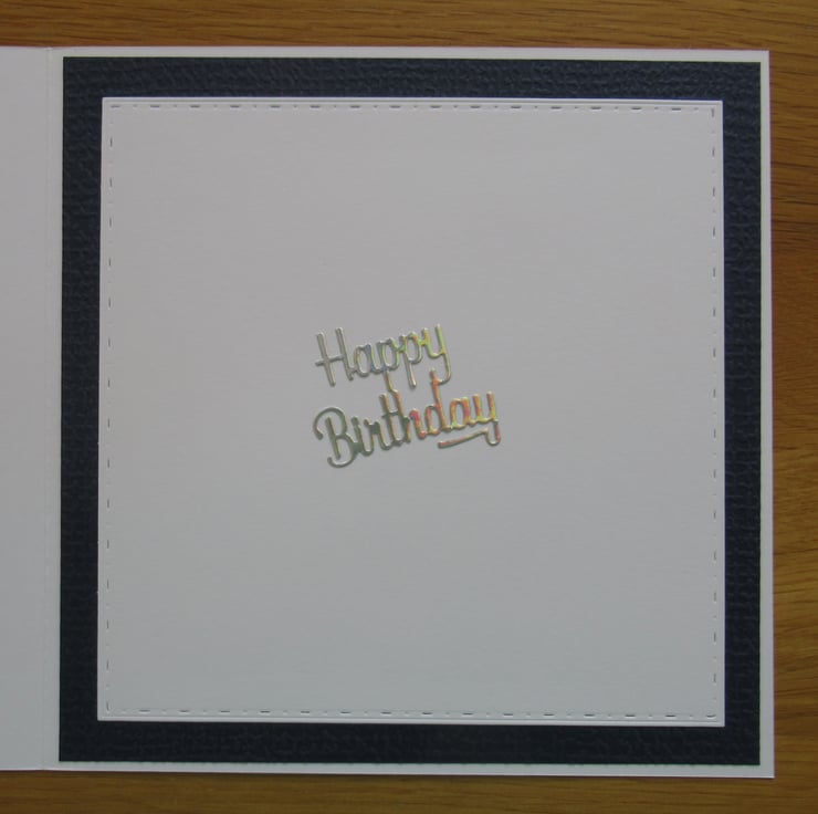 This lovely card in red, white and blue features the image of steam train on the move. I have used decorative dies to frame the image and placed them all upon a navy blue background card. I added a silver die cut Happy Birthday greeting which has been raised with 3D foam pads and the inside has been finished to coordinate with a silver die cut Happy Birthday greeting.