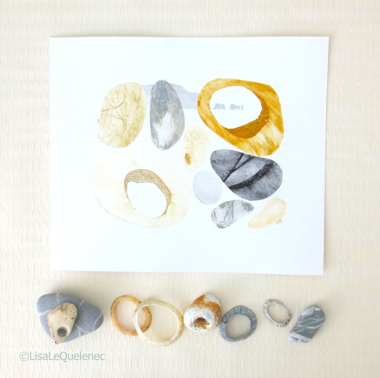 Hag stones, pebbles the Isle of Wight mixed media art coastal picture