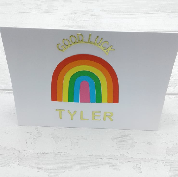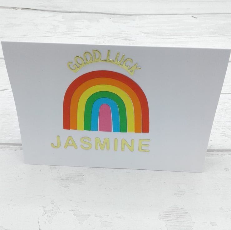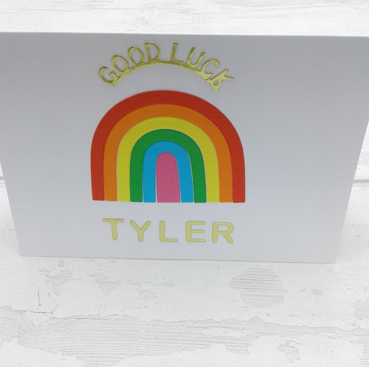 This listing is for a personalised good luck card and envelope measuring 5 inches x 7 inches.