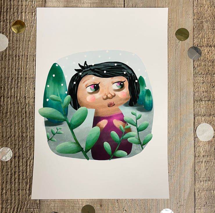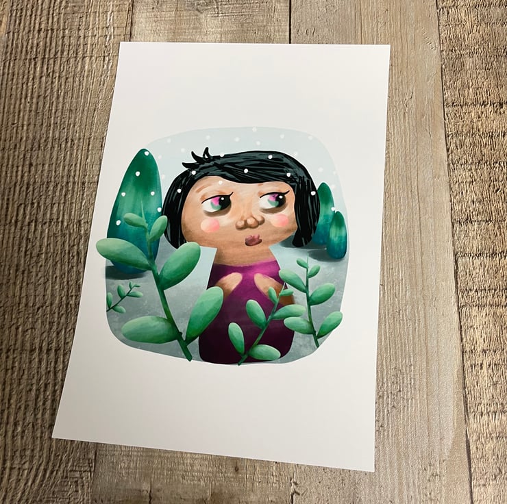 This cute girl in the woodlands during winter is one of my latest art prints. I created it using my iPad Pro.