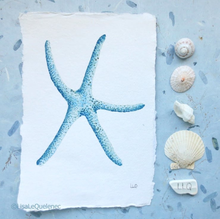 An original watercolour painting of a starfish.