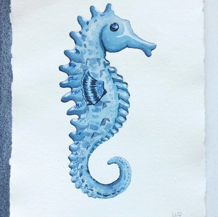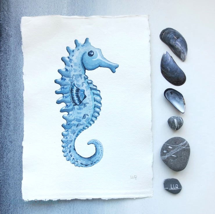Sale Seahorse original watercolour art illustration shell coastal collection