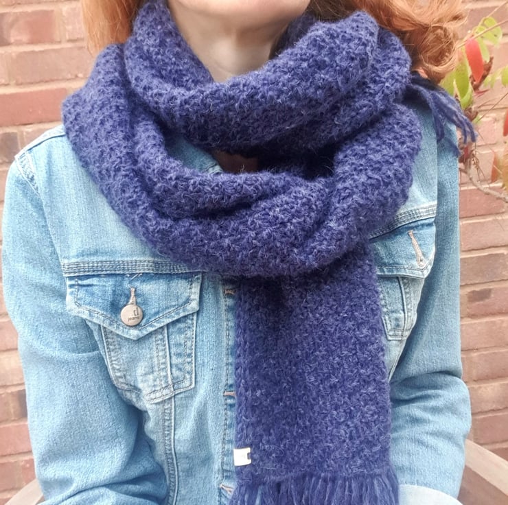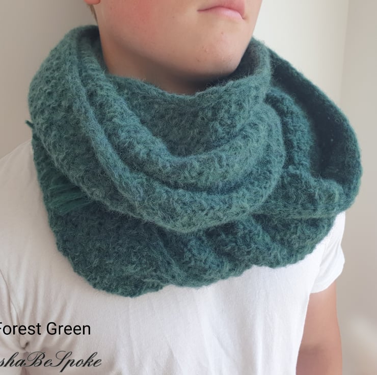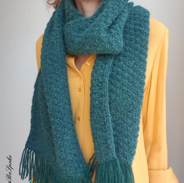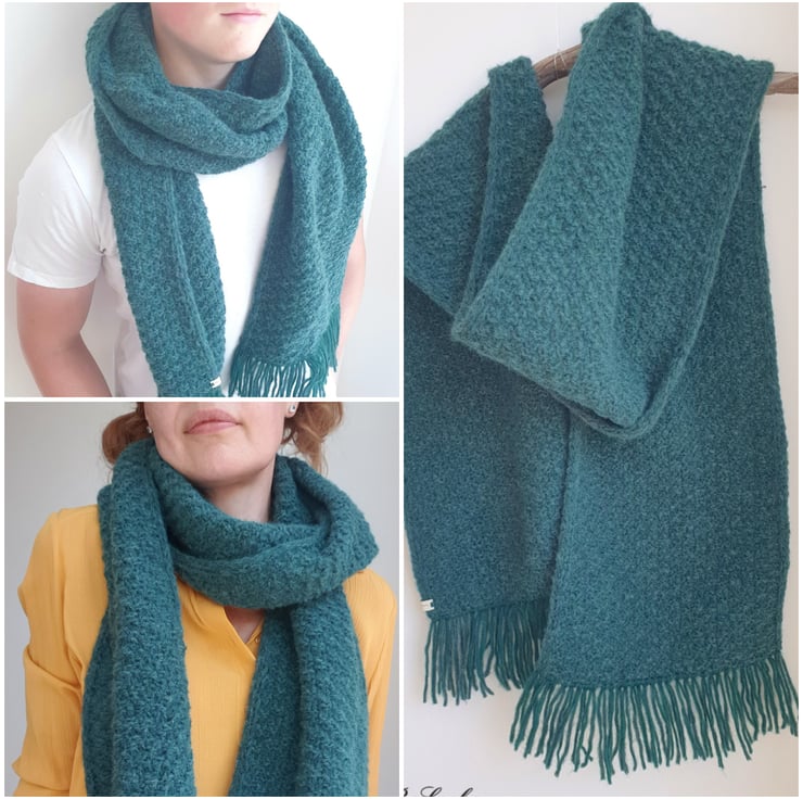 This scarf is MADE TO ORDER and available in many colours (choose your yarn on the last picture). Pictured scarf is made in colours 05 - Brown and 19 - Forest Green and 09- Navy Blue. Please contact me before ordering to check the yarn availability.