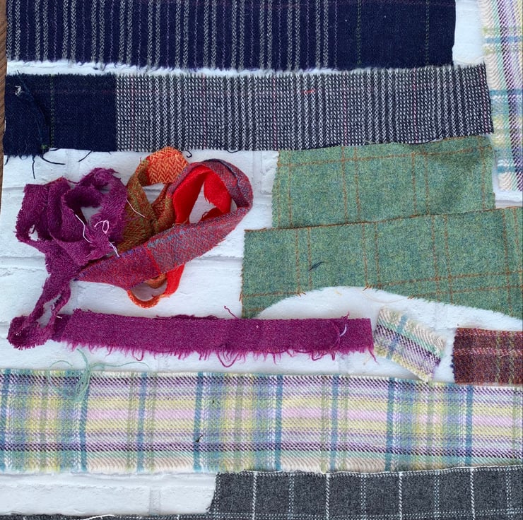 A pack of various sizes of tweed scraps, these are from finishing mills in the Scottish Borders where tweed items are cut and prepared for sale so what is offered is authentic.