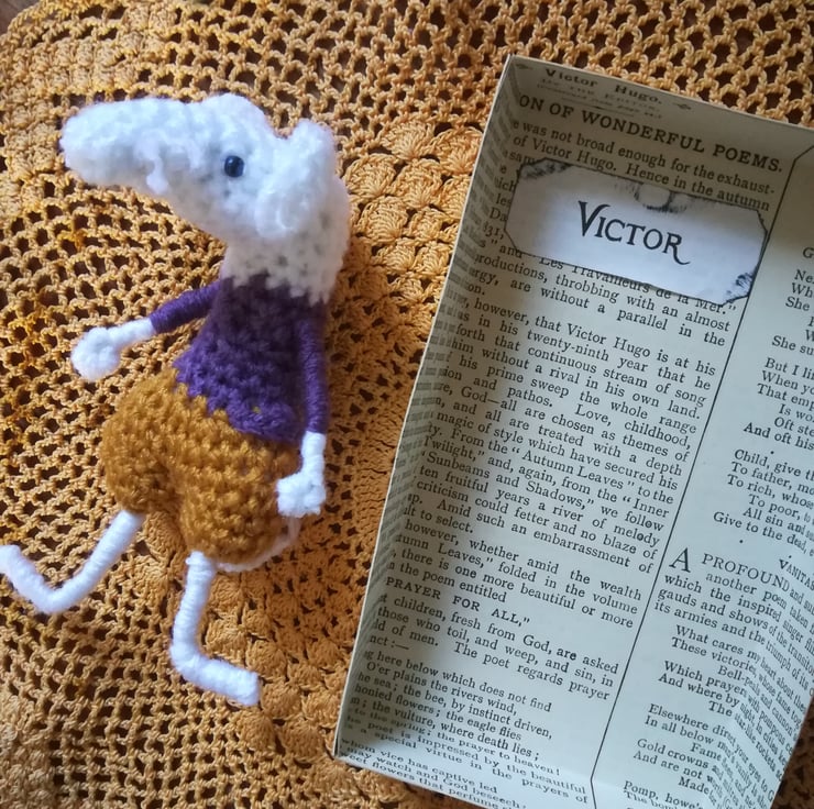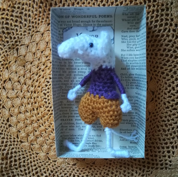 This little mouse has been hand crocheted and has wire re-enforced arms and legs.