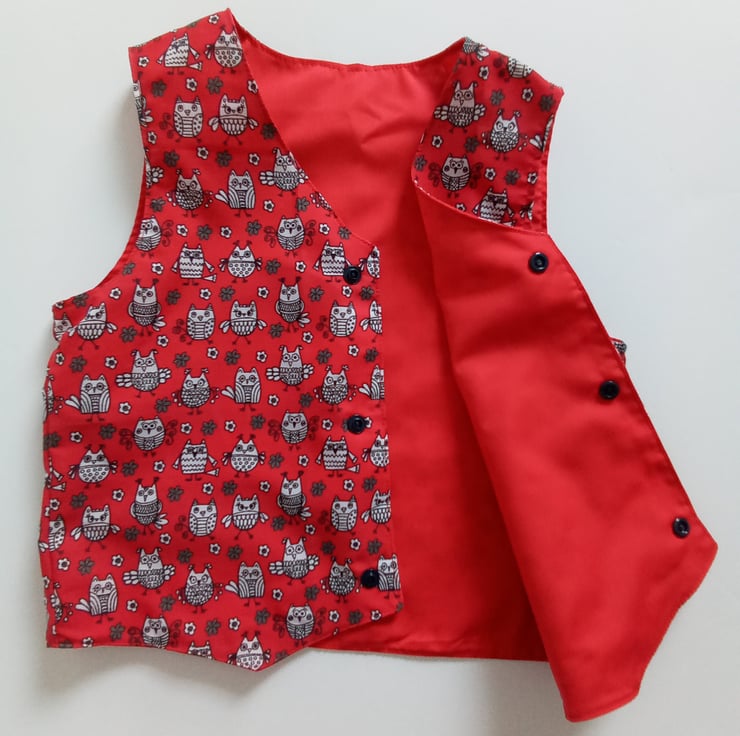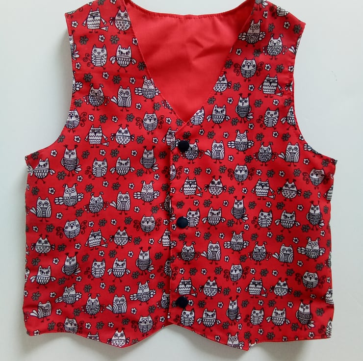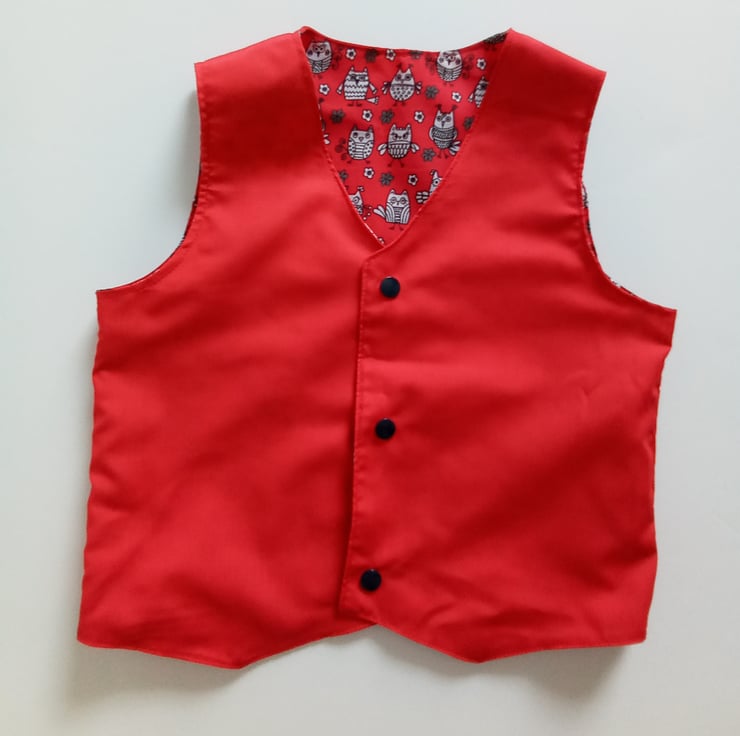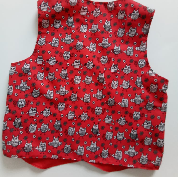 Reversible Waistcoat for boys with an Owl design made from Polycotton.