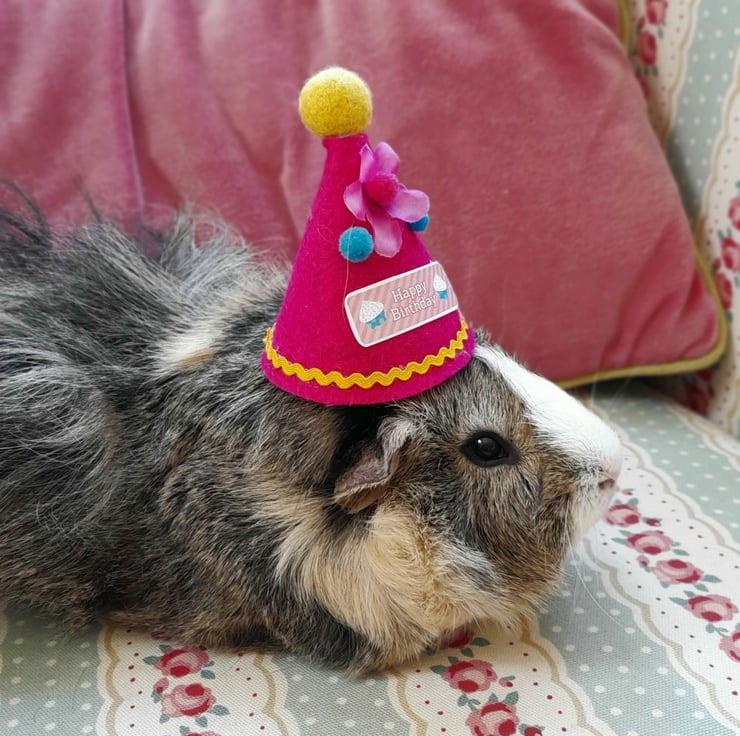 A fun handmade pretty felt birthday hat for your guinea pig photos.