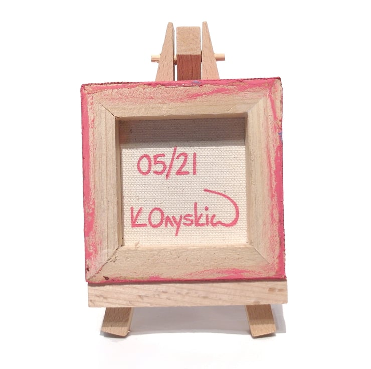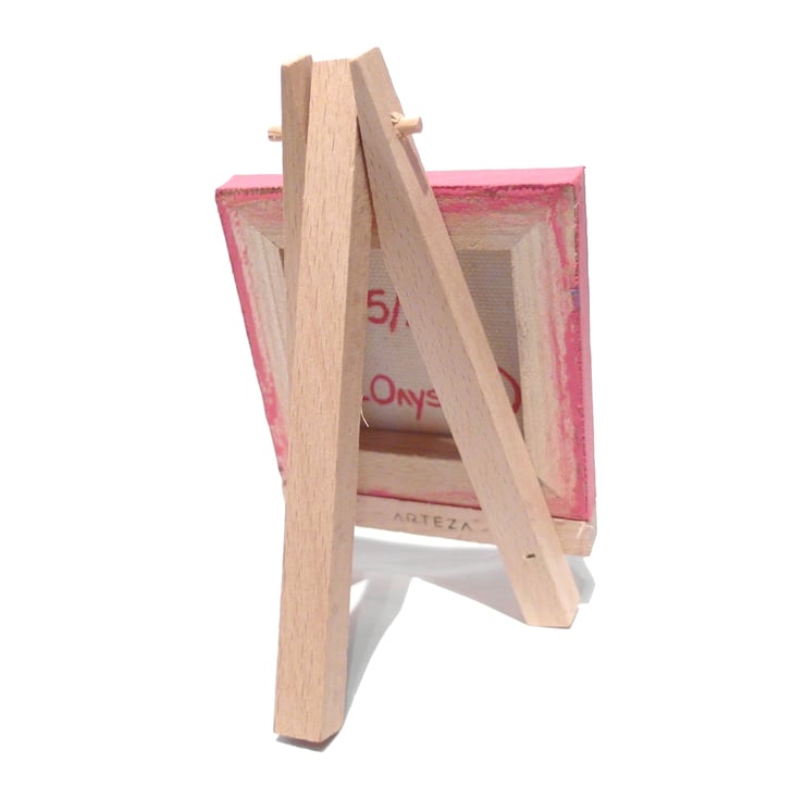 The original animal canvas will either come with a mini 12cm (4.7") wooden easel for display, or will be strung with a ribbon in a colour that matches the painting so it can be hung on a wall (as in the last photo). Just choose with easel or ribbon hanging when you buy.