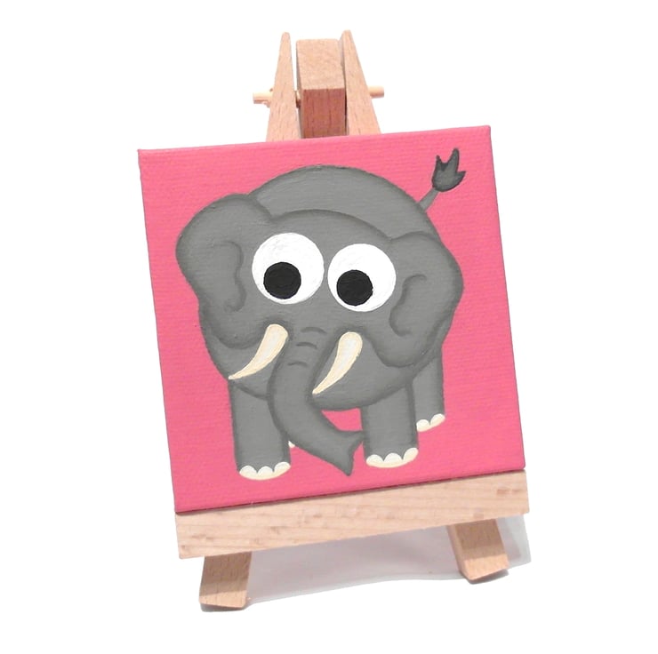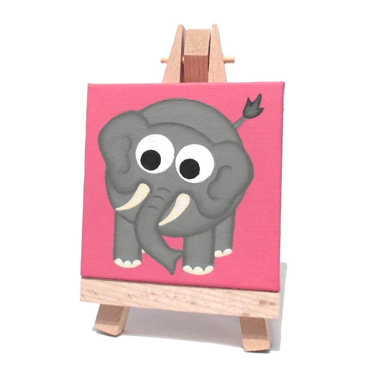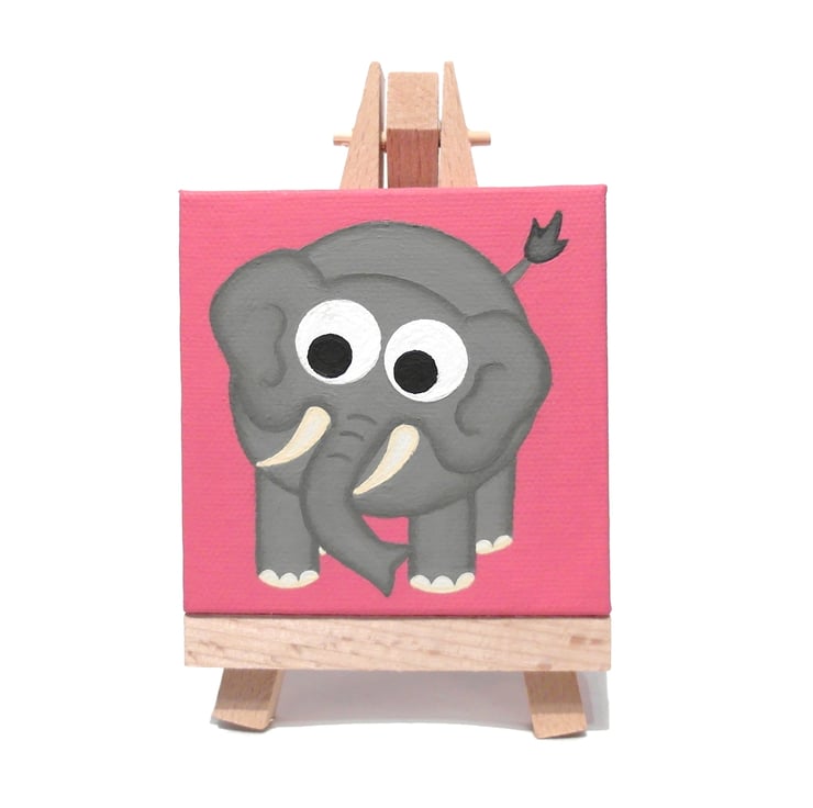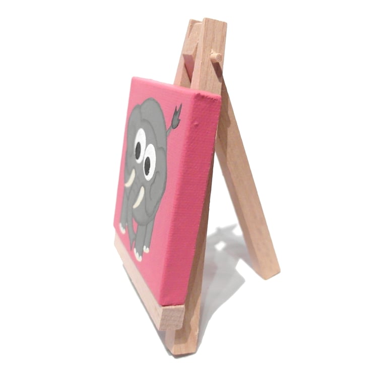 Elephant Art - a cute original animal painting on a miniature canvas with easel