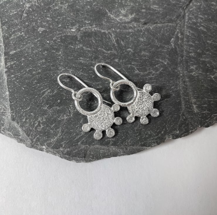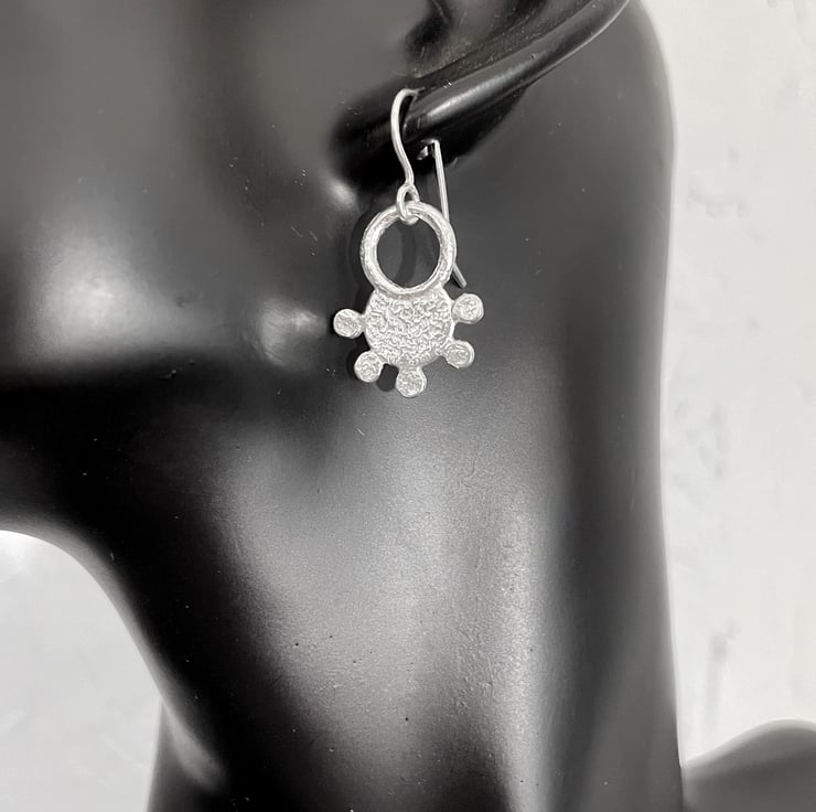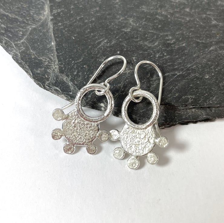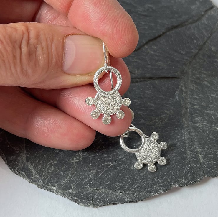 I have fused silver rings and circles to make some stylised tribal sun ray earrings.
