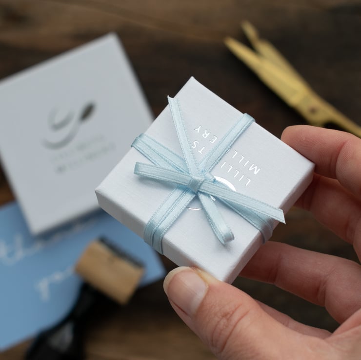 Presented in a Lillibets Millinery branded box, wrapped with tissue and ribbon.