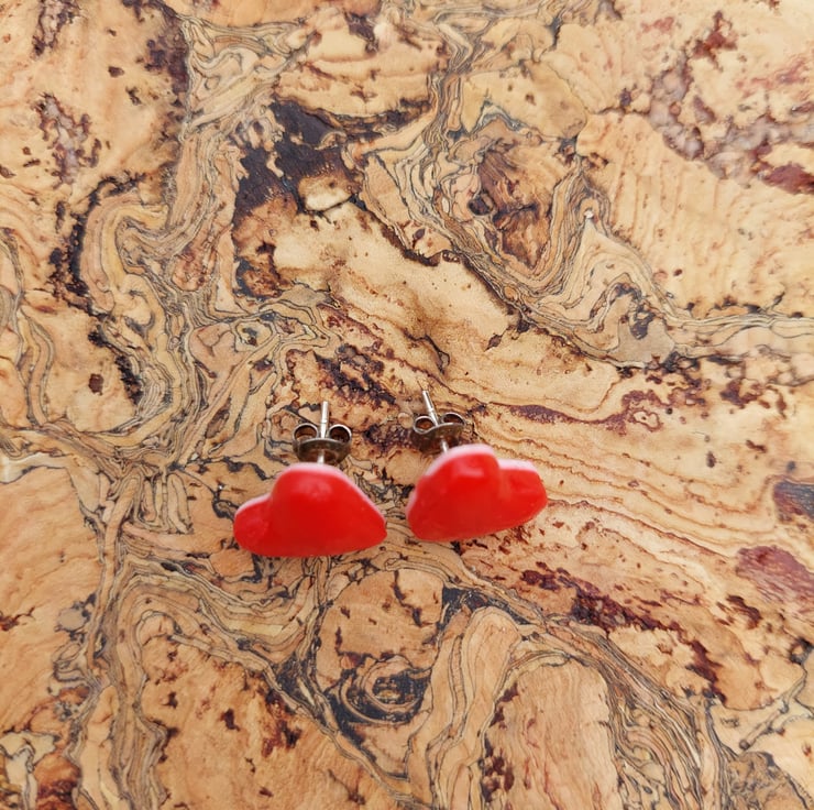 these red heart studs have a white back and are inspired by the delicious heart sweeties.