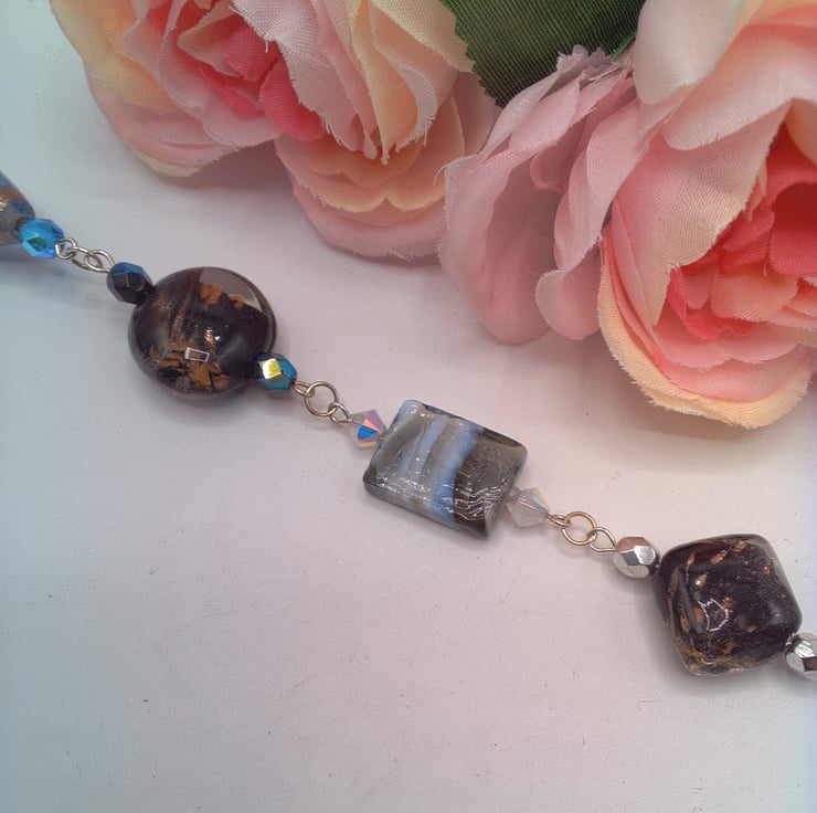 Blue and Black Glass Lampwork Bead Bracelet, Summer Bracelet, Blue and Black Bracelet, Lampwork Bead Bracelet, Birthday Gift, Anniversary Gift, Gift for Her, Gift Ideas for Women, Rosary Style Bracelet