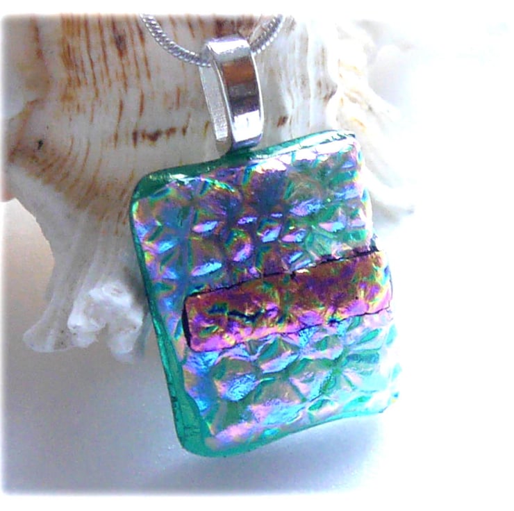 Dichroic Glass Pendant 230 Teal Pink handmade with silver plated chain
