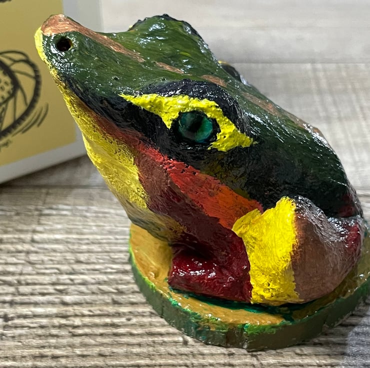 Green, frog, yellow, clay, air dry clay, sculpture