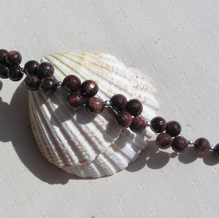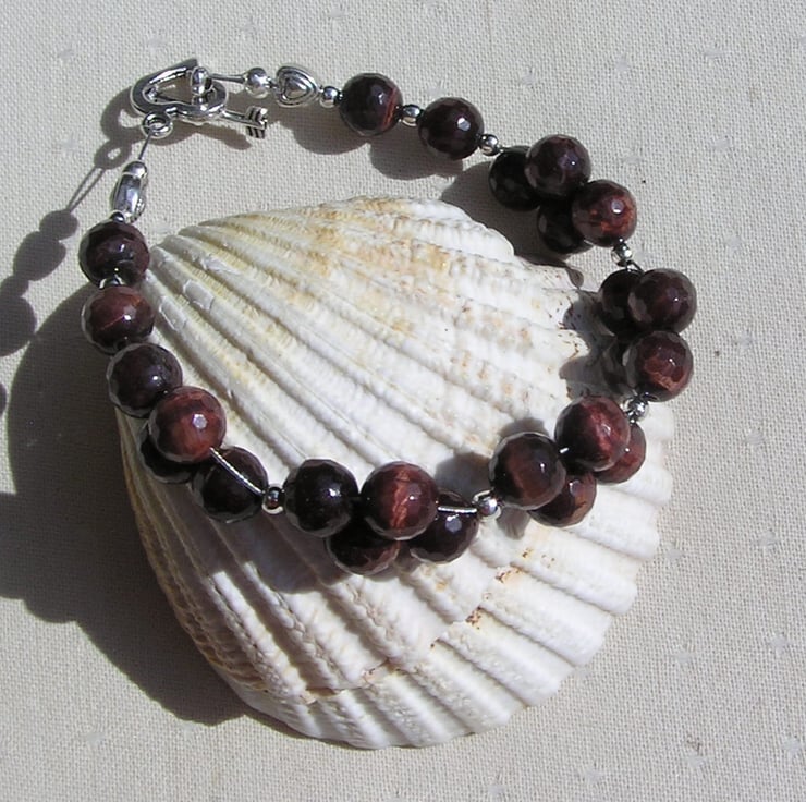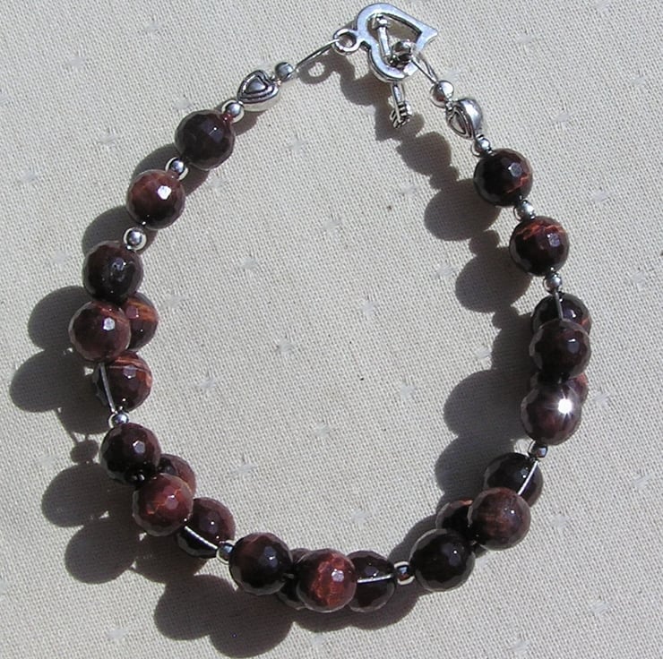 This Stunning Bracelet is made from Red Tiger Eye faceted round beads clustered together in four's and for that added bit of sparkle tiny Silver spacer beads - a Glistening Warm effect that will look stunning either worn casually or with something more Elegant for a Special Evening out