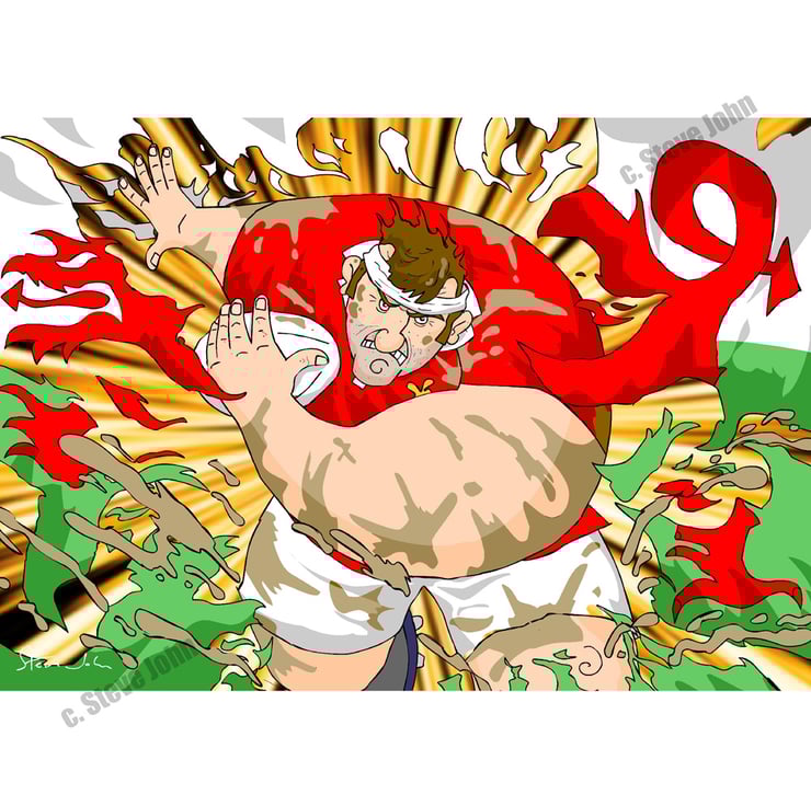 'Rugger through Welsh Flag' card is A5 size with envelope, cello bag protected. Blank inside.