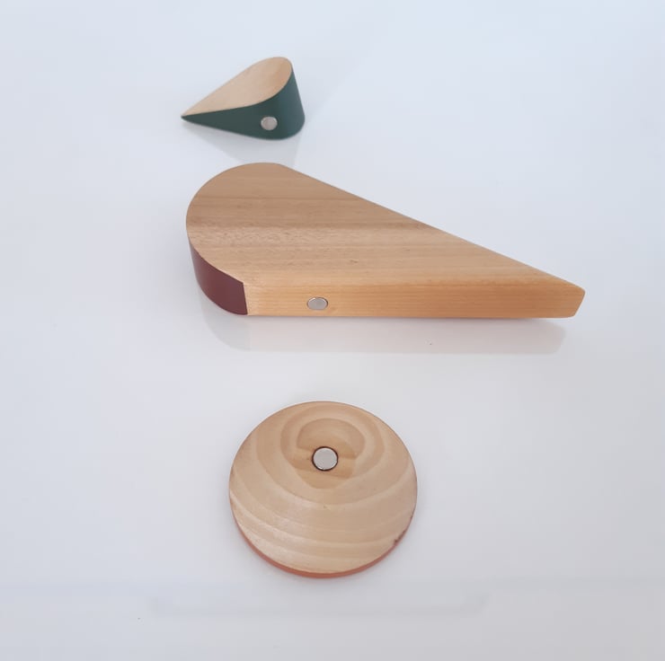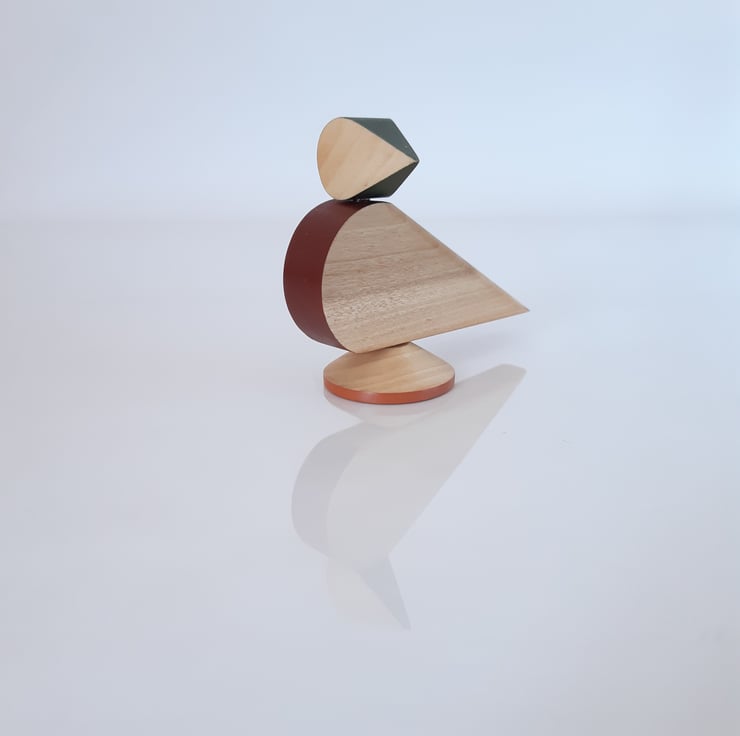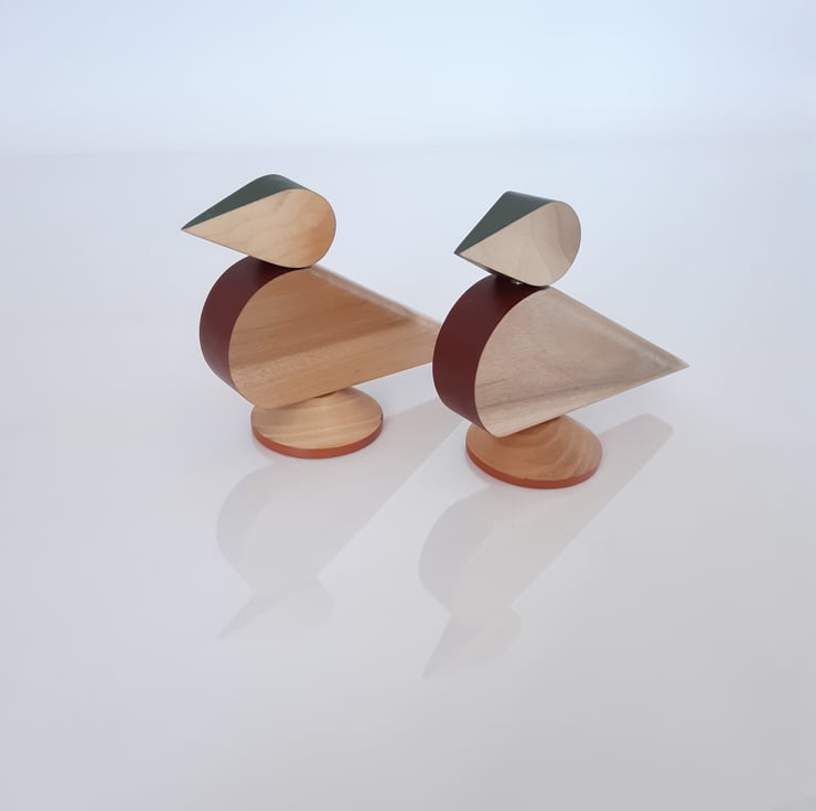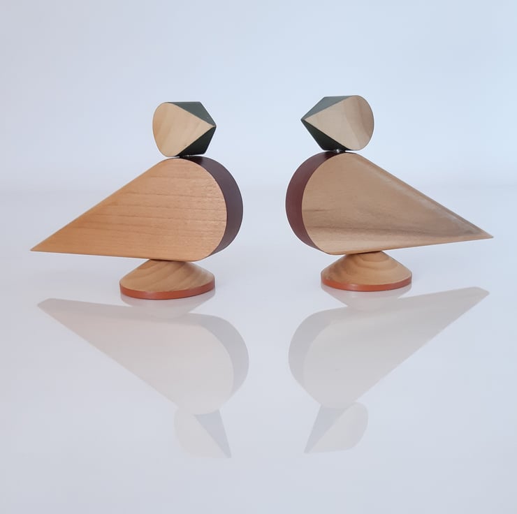 Handcrafted from reclaimed Tulip Wood, sourced from discarded artist's canvas stretcher bars. These simple bird forms are composed of three elements and joined with magnets.