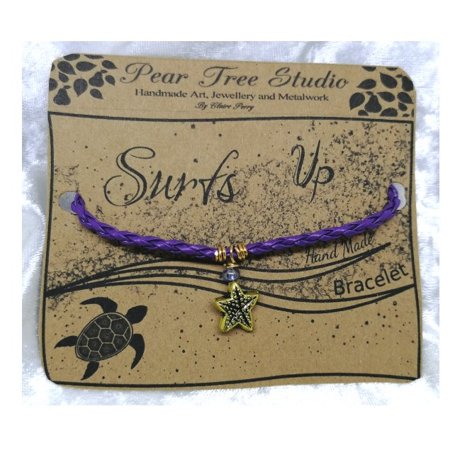 Bracelet Purple Faux Leather Strap with a gold plated clasp and gold plated Starfish charm bead.
