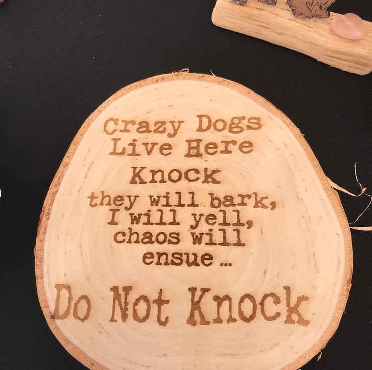 Crazy Dogs Live here Knock they will bake I will Shout and Chase will ensure DO NOT KNOCK