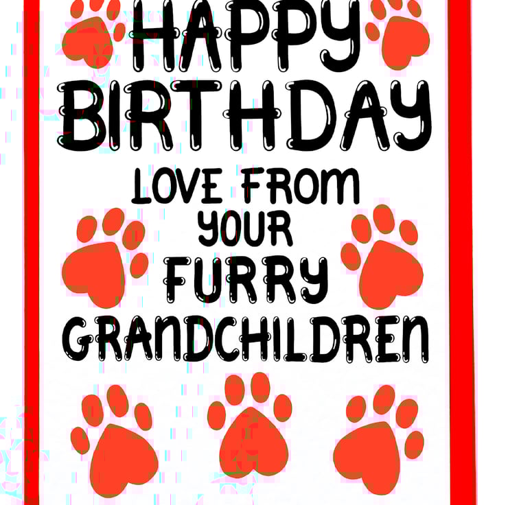 Greeting on front: HAPPY BIRTHDAY LOVE FROM YOUR FURRY GRANDCHILDREN