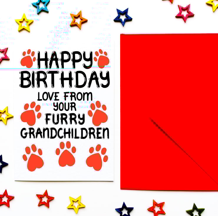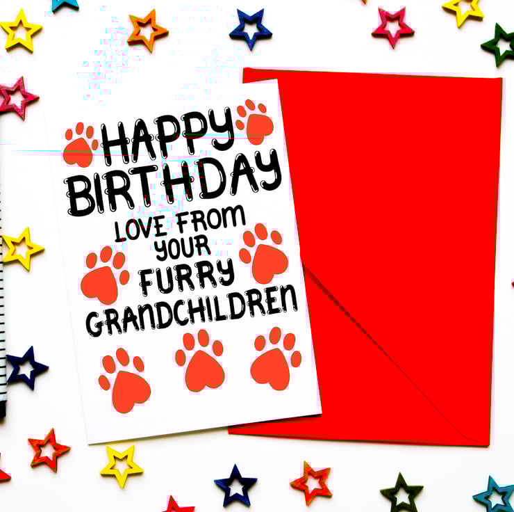 Birthday Card From Furry Grandchildren, Dogs, Cats For Grandma, Grandad