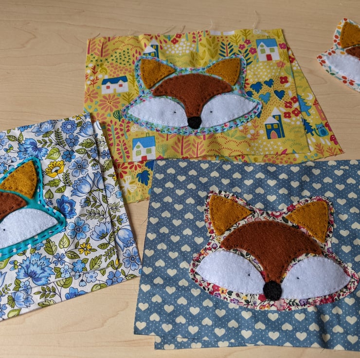 I'm not keen on plain purses for myself so I designed this felt appliqué fox and love combining it with different fabrics and hand-stitching.