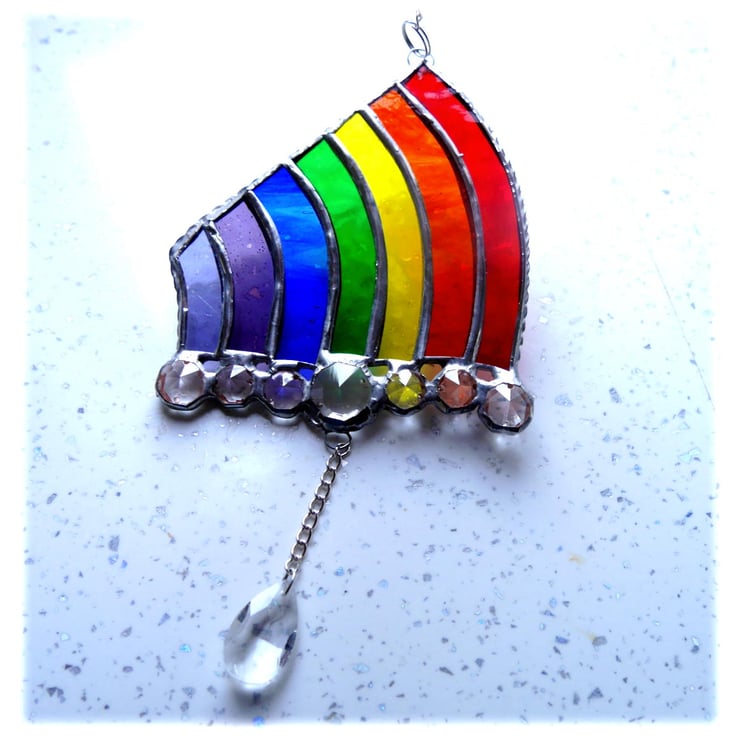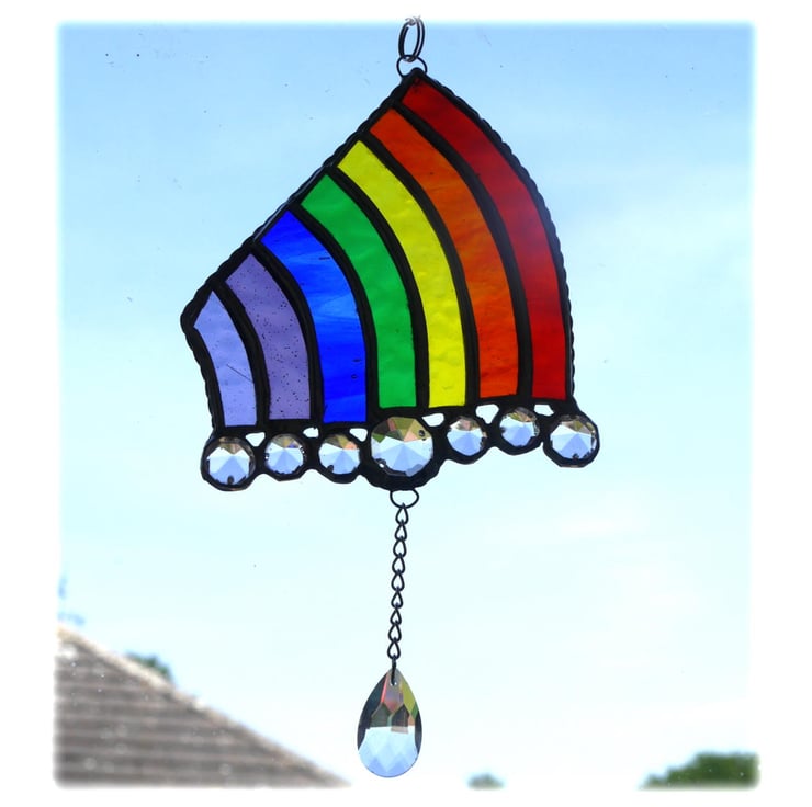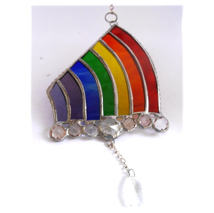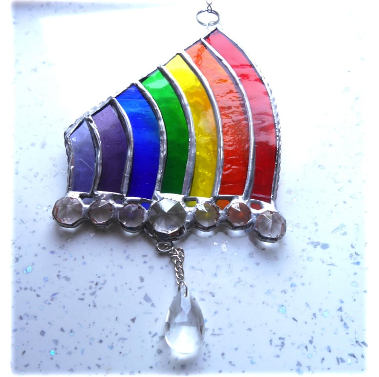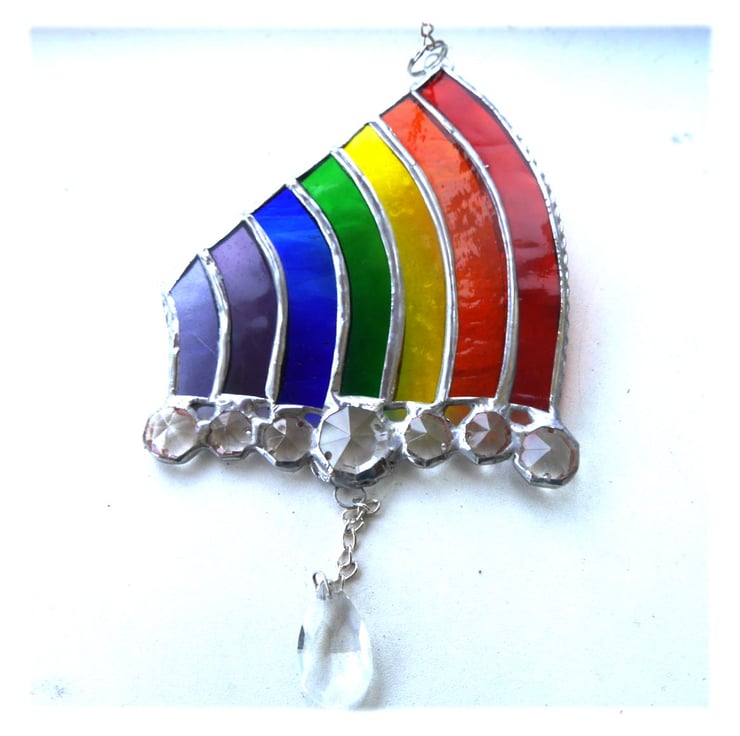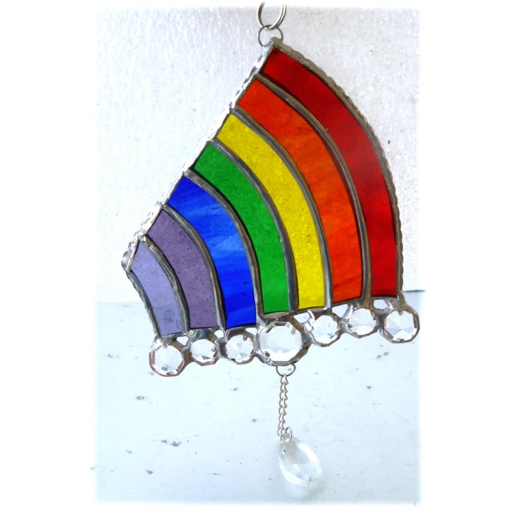 Rainbow Drops Stained Glass Suncatcher Crystal Handmade