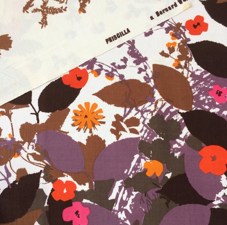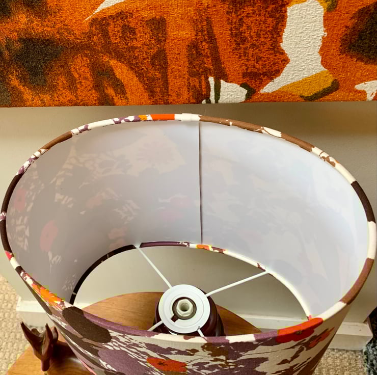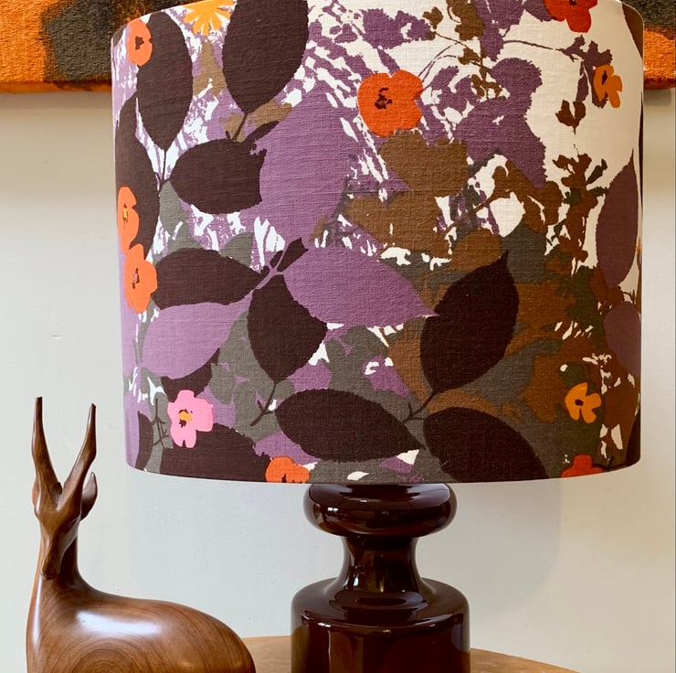 RETRO Purple Leaf Prescilla Bernard Wardle 60s 70s Vintage Fabric Lampshade - bold fabric for a lampshade in a modern or traditional home.