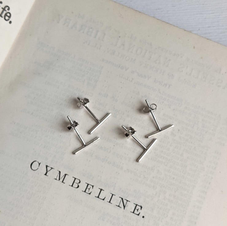 Stick stud earrings - sterling silver - little lines - 10mm - nickel free - sale