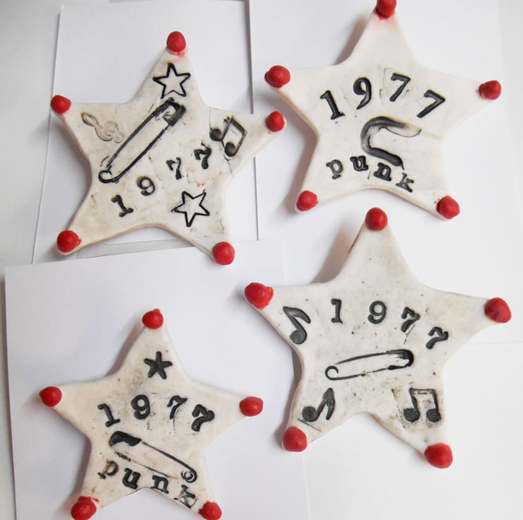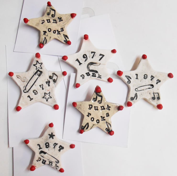 This is a hand made item, impressed and enhanced with a Punk Rocks stamp in matt black on white glazed red Porcelain. It also has musical notes stamped on it.