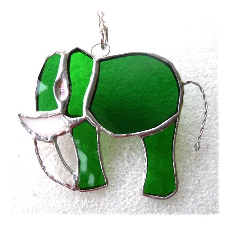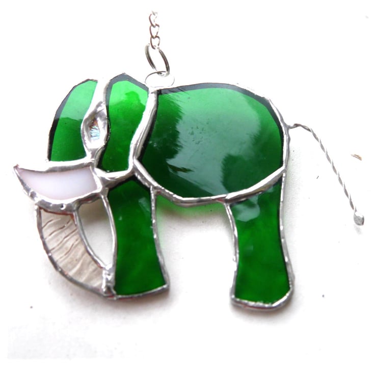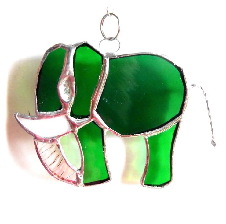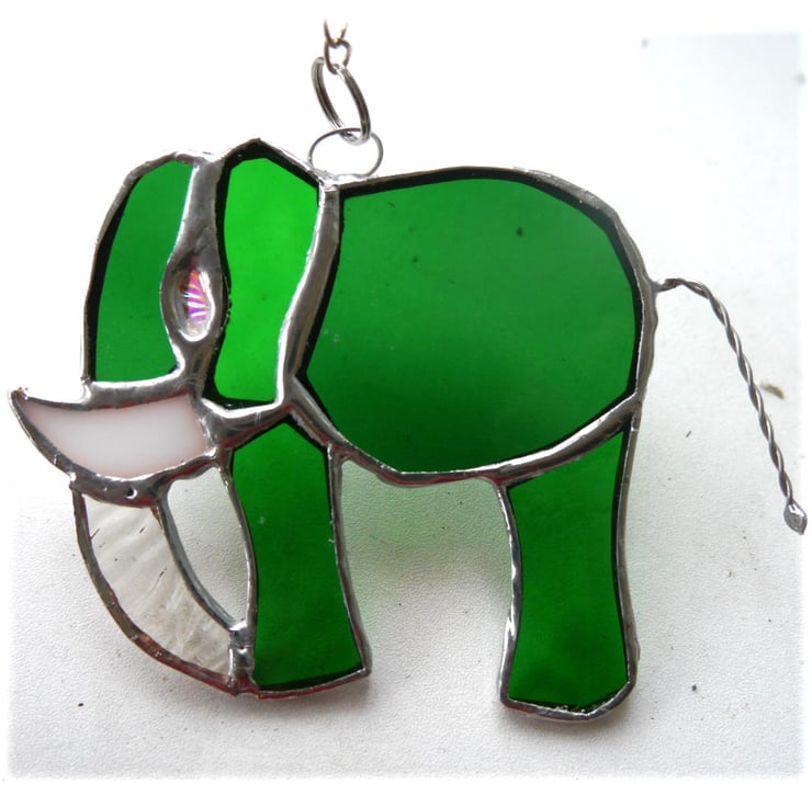 The elephant looks lovely hanging in the window where it catches the light. It hangs from a little silver chain which is securely attached to the top of the elephant.