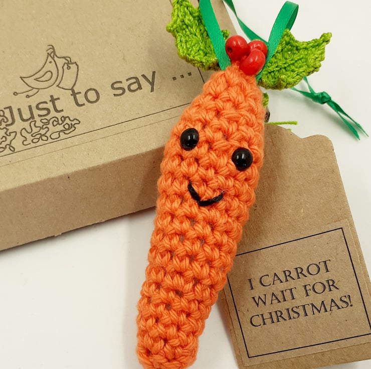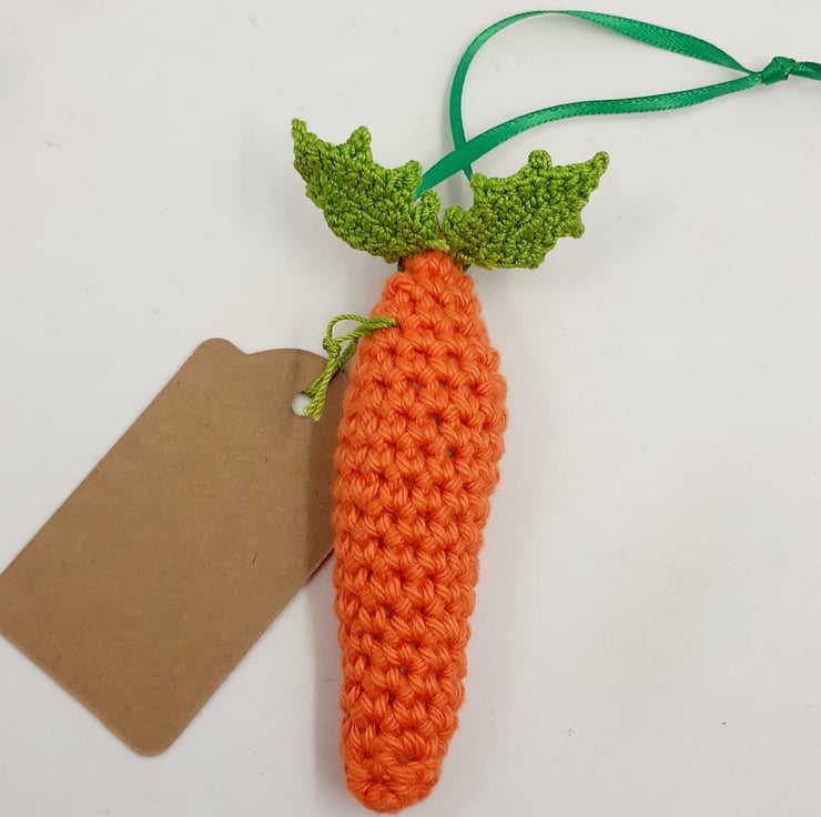 The carrot measures approximately 8.5cm tall and comes wrapped in tissue in a labelled PIP ( Postage in Proportion) box, all ready to be given or posted on.